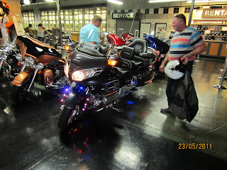This is the moment the Road King went back. Was I sorry to see it go? No not really- it was ideal for this trip, but I wouldn't buy one. It never missed a beat and kept up with the rest with no trouble.